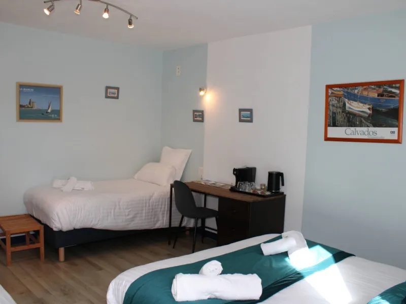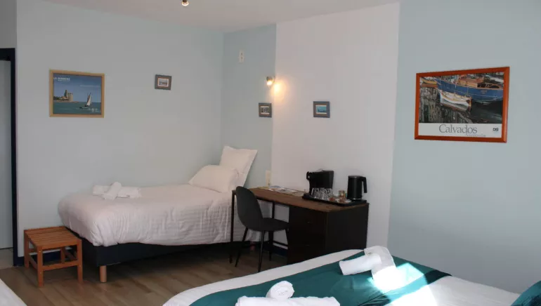 The guest room "La Mer" is located on the first floor. It is suitable for 4 people maximum (1 bed 140 and 2 beds 90). A shower room with WC is adjacent. There is no TV. Pets are not accepted.