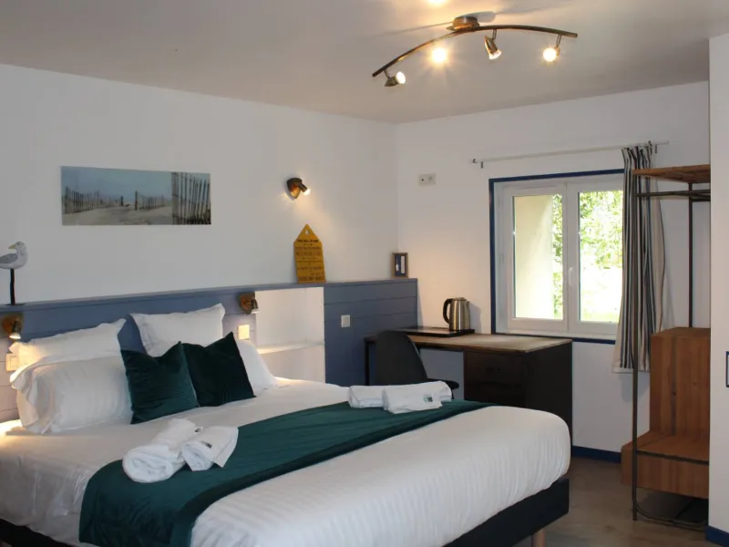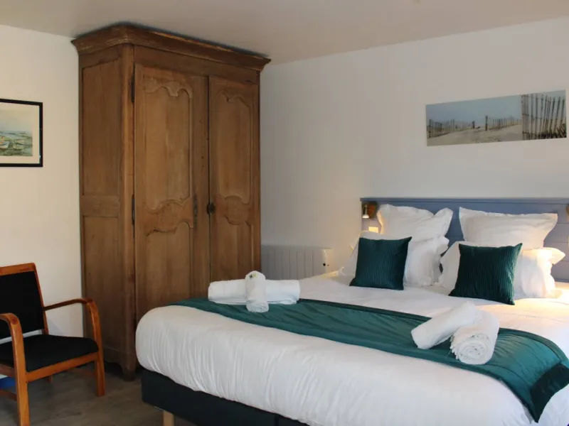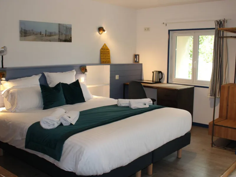The guest room "La Plage" is located on the ground floor. It is suitable for 3 people maximum (1 bed 140 and bed 90). A shower room with WC is adjacent. There is no TV. Pets are accepted.
