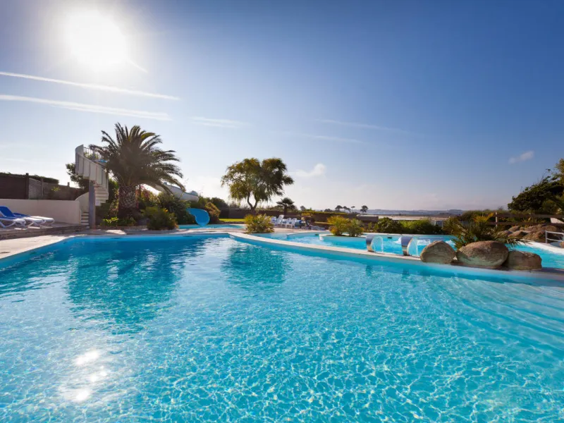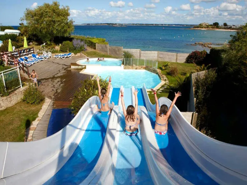 In an outstanding seaside setting of over 12 acres, this campsite right on the sea offers a large choice of holiday rentals and spacious pitches, bordered by hedges. A friendly, family atmosphere. Heated pool and water zone, GR34 coastal path for walkers, and farm animals in a landscaped area. Covered pool and heated toilet/shower block.Extra fietsdiensten