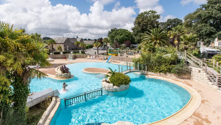The Domaine de la Ville Huc lies on the outskirts of Saint-Malo in a 6-hectare park, the ideal holiday destination. In addition to O'Hara mobile homes and spacious shaded pitches, the site boasts a superb leisure pool complex, children's play area, bar, pizzeria etc. An outstanding venue!