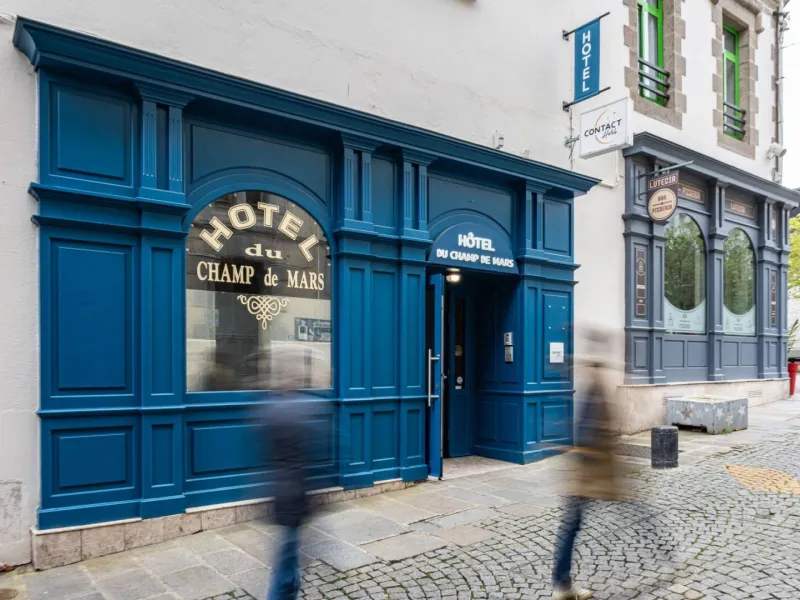The painted wooden facade gives this hotel the feel of a British pub, and the stickers in the window testify to the fact that it is recommended by numerous guidebooks. In the small reception lounge, bedecked with antique furniture, you can get acquainted with Christophe and his wife. With all the hospitality you’d expect from an independent hotel, the couple offer 21 comfortable rooms decorated in light colours with some added nautical touches. The rooms are irregular shapes, as dictated by the old walls of this quaint hotel in the historic part of the town. A special night time rate for parking is also available in a nearby car park : a real plus for a hotel in the town centre.Localisation