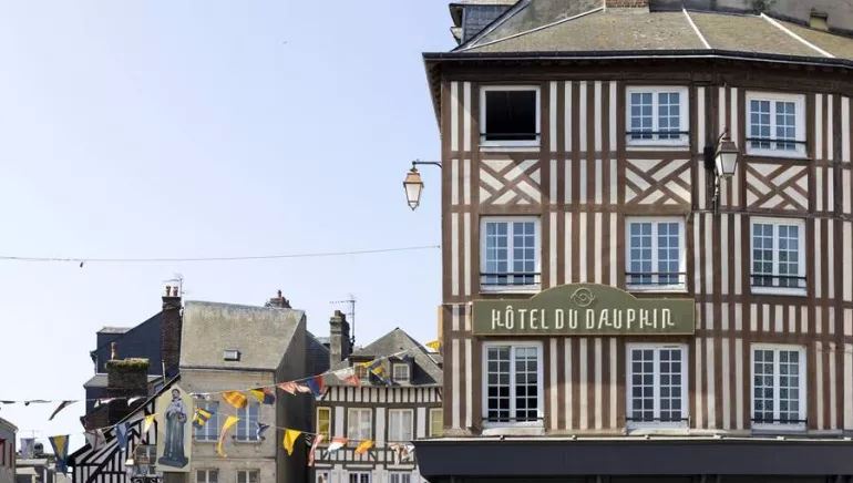 Facing the famous Sainte Catherine church and immersed in the heart of the art galleries district, the Hotel du Dauphin is the ideal address to discover the Old Honfleur on foot, its basin at 2 minutes walk, its restaurants and shops. The hotel du Dauphin, classified 3 stars, is a charming hotel installed in walls dating from the 12th century and is fully in line with the history of Honfleur, a history dating from the Middle Ages which makes so much its charm and its fame.