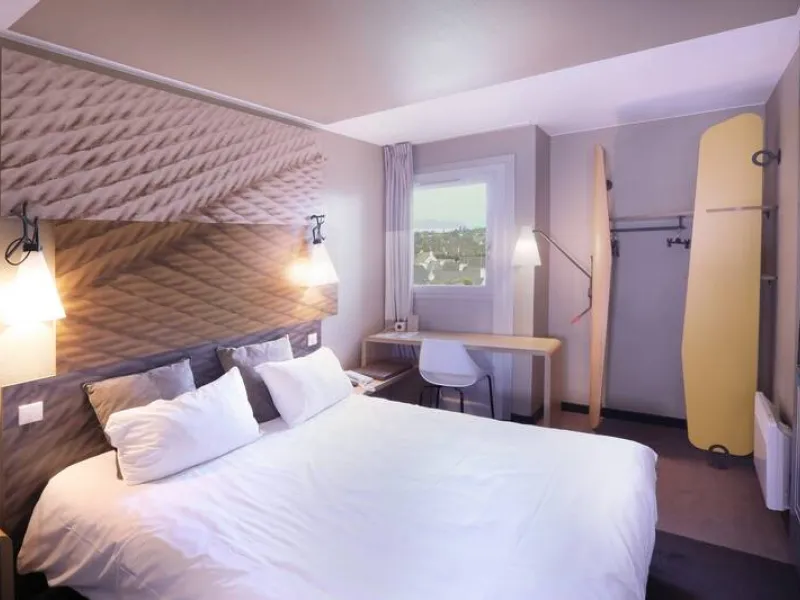 First hotel when you reach Saint-Brieuc from Rennes. Easy access via the RN 12 motorway. Close to the city centre. Only a 10 min drive from the congress centre! Admire the Saint-Brieuc bay in the background!Enjoy our lounge bar, unique food and a free big private car park.