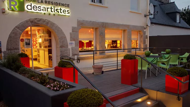 The completely renovated "La Résidence des Artistes" hotel welcomes you in the heart of the corsair city, a stone's throw from the historic center of Roscoff, 20 meters from free parking, 100 meters from the old port and the seaside and 5 minutes from the pier on Batz Island, the ferry terminal and the ferries to England and Ireland. The sea is at the end of the street. Near the thalassotherapy center, the biological station, in the heart of a lively district full of shops and restaurants, our hotel is an ideal starting point to discover the small corsair city of Roscoff and all the riches of Finistère.