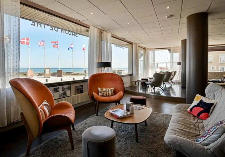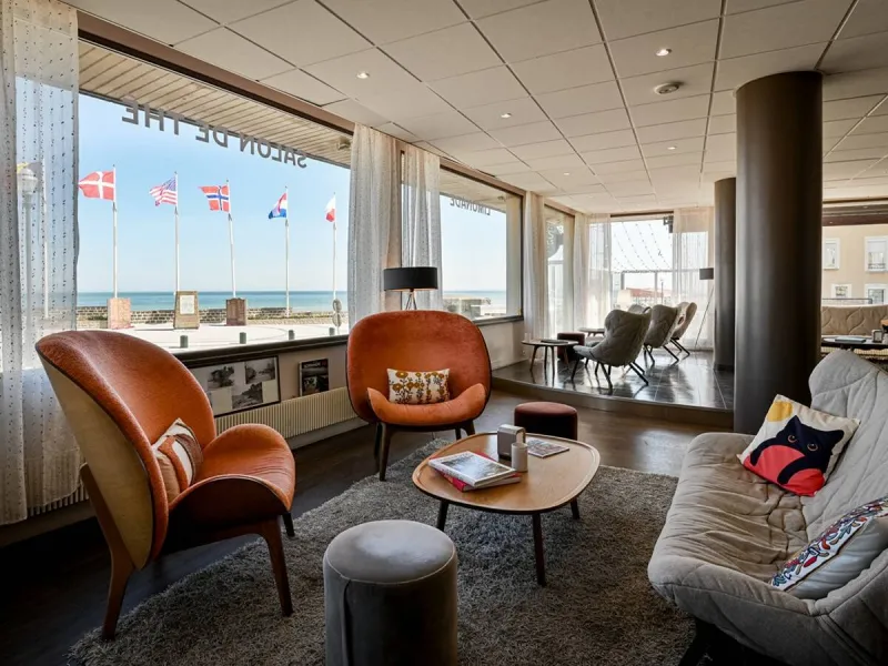 Restaurant Hotel of good standing with contemporary design located in front of the sea on the coast of Nacre in Basse-Normandie in the heart of the fine sandy beaches which saw the allied landing 70 years ago. Traditional cuisine with formulas from 20€.