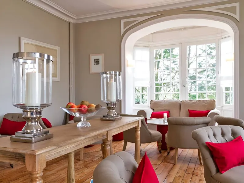 On the road to Deauville and Mont Saint Michel, located on the D-Day beaches, Les Villas d'Arromanches is 8 km from Bayeux and 18 km from the American cemetery in Colleville sur mer.In the heart of a wooded park, in a quiet environment, the large stone building and the 19th century half-timbered building will welcome you for a stopover or a stay in comfortable rooms.
