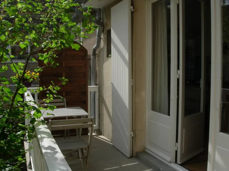 L'Inattendue, in a quiet place, in a green setting, studio of character : studio of 25 m², all comfort, for 2 persons. South facing terrace with garden furniture.This studio, carefully decorated, is nestled in a house with a walled garden which ensures the perfect tranquility of the place. Its large French window (with shutters) opens onto the terrace and provides excellent light.