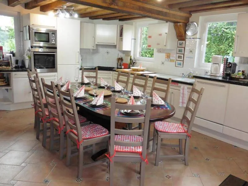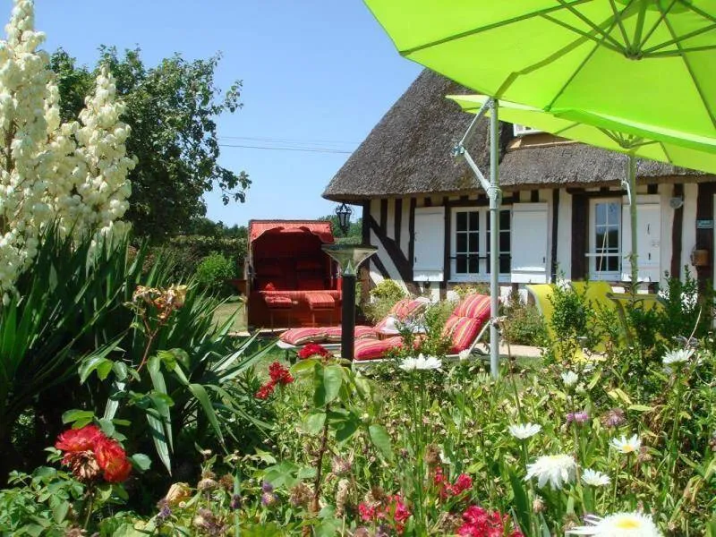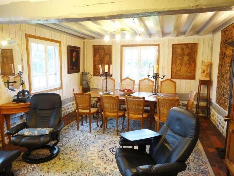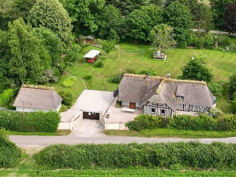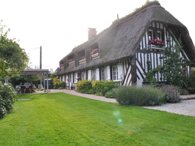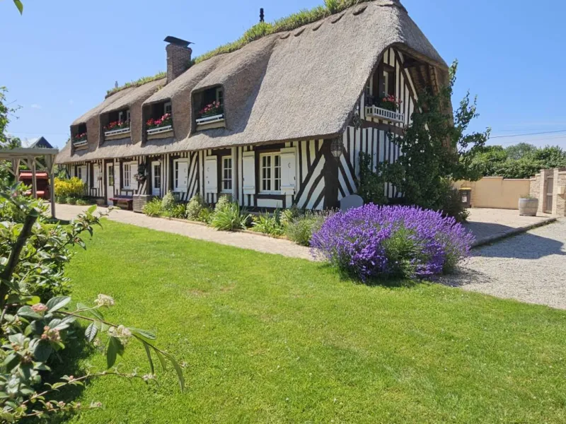 "Le Pré d'Haucourt" is composed of 2 authentic restored thatched cottages, with 5 bedrooms, 3 shower rooms, 1 bathroom, 4 WC. Located in a small village in the heart of the Pays d'Auge, it is a real haven of peace thanks to its vast enclosed and landscaped garden, and its preserved environment. Its proximity to Deauville and the Côte Fleurie opens the possibility of numerous sports, gastronomic, cultural and historical activities. The gite offers space and independence, ideal for a comfortable stay with family or friends with facilities such as: piano, large screen TV, free WIFI (fiber optic), board games, DVD library, outdoor games, etc. Pets are welcome. Horses & riders welcome (150 m from the gite, enclosed meadow and paddock, box. Lodging and food package 20€/day/horse. Possibility of lessons with instructor). Possibility to rent bicycles in Villers-sur-Mer with direct delivery to the gîteGite composed of 2 independent cottages. The main cottage includes on the first floor: kitchen with 10 place settings, living-dining room with fireplace and armchairs, TV room with piano, corner sofa and armchairs, 1 bedroom (1 bed 160) with shower room and WC. Floor: 3 bedrooms (2 x 2 beds 90 twin in 180 and 1 bed 160), bathroom with WC, shower room, independent WC. Lounge of relaxation. TV. Canalsat. Safe deposit box