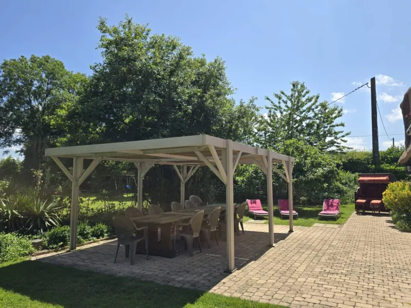 Large enclosed garden with electric gate. Ping-pong table, badminton-volleyball net, mini-golf, swing, children's house, giant mikado, croquet, pedal cars, tricycles, various games, garden furniture, deckchair, arbour, parasols, gas barbecue.
