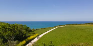Deze groene weg gaat verder in Calvados, eerst langs de RD613 en vervolgens voorrang op een oude spoorlijn die u naar de haven van Isigny-sur-Mer brengt. De route vervolgt zijn weg over kleine departementale wegen met mooi uitzicht op de Baai van Les Veys en brengt je in alle rust naar Grandcamp. Deze hele route is vrij gemakkelijk en is er slechts een klein hoogteverschil.