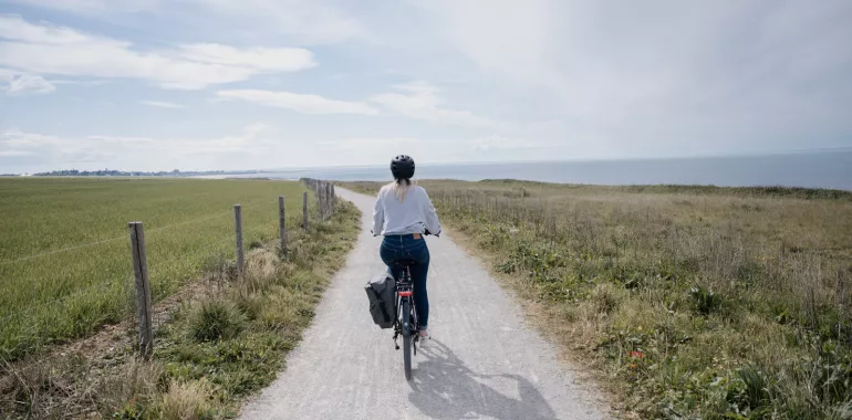 Dit traject is een schitterende nieuwe groene route langs de kliffen van Le Bessin. Je komt dan bij het prachtige Omaha Beach en fietst over paden en kleine weggetjes rond de Amerikaanse begraafplaats.