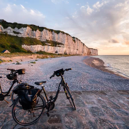 La Côte d’Albâtre et sa blancheur immaculée en font une destination idéale pour les amateurs de beaux paysages ! Ses villages de pêcheurs et ses stations balnéaires cachent mille merveilles. Envie de découvrir tout ça ? À vos pédales !
