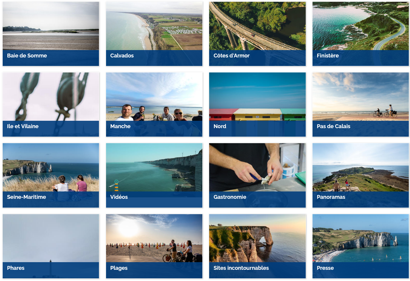 Pratique : une entrée par thématique est également possible (sites incontournables, phares, plages, gastronomie, panoramas, presse)