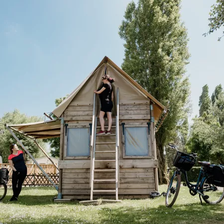 Cyclistes, vous êtes adeptes du camping mais vous voulez voyager plutôt léger ? La plupart du temps, il est possible de louer des mobil-homes à la nuitée dans les campings en basse saison et hors longs week-end. Sur La Vélomaritime, en plus de ces locations "traditionnelles", de plus en plus de campings aménagent différentes solutions d’hébergements légers et adaptées au tourisme à vélo. Cela évite de transporter sa tente et autres matériels encombrants.
