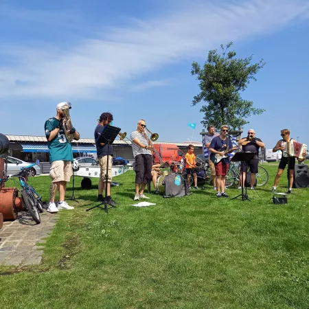Ce groupe de copains musiciens âgés de 8 à 60 ans aime relever des défis insolites. Habitués à se retrouver lors du carnaval de Dunkerque, malheureusement annulé en 2021, ils voulaient donc se retrouver se retrouver en pédalant sur La Vélomaritime avec leurs instruments de musique !