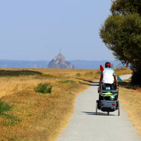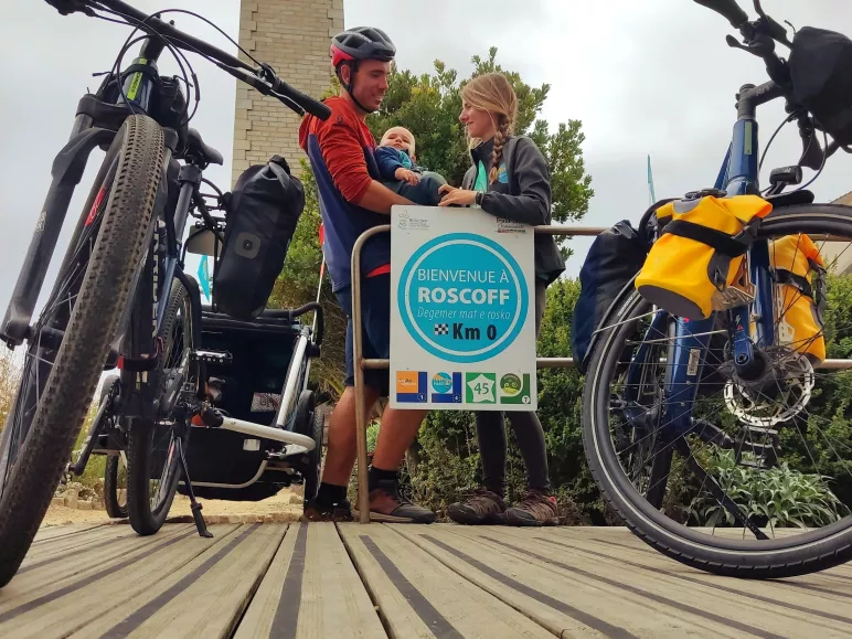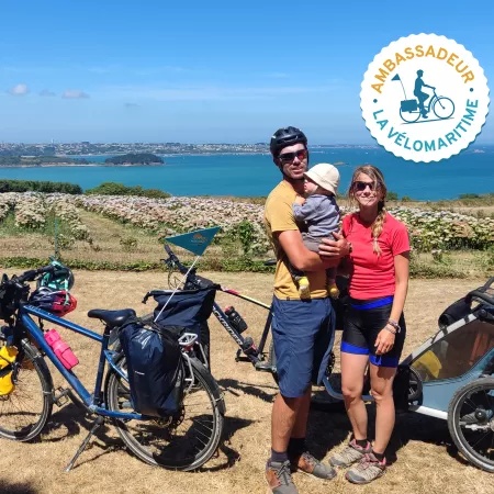 C'est à bord de sa remorque vélo que le mini baroudeur Clément s'est élancé depuis Roscoff avec ses parents pour son premier grand voyage à vélo jusqu'au Mont Saint-Michel. Lucie et Jérémy, ses parents avaient postulé pour être ambassadeurs de La Vélomaritime 2022. Pour cette petite famille des Hautes-Alpes, adepte d'itinérance, d’activités outdoor et de nuits sous tente c'est un tout nouveau challenge qui les attendait avec un bébé ! Au programme du périple estival : 500 km de vélo en 15 jours.