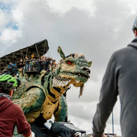 Dans les rues de Calais se trouve une créature fantastique : un dragon ! Fait d’acier et de bois, cette créature mystique ne semble pas vouloir attaquer la ville, mais plutôt promener les touristes ! Une imposante construction de François Delarozière plus vraie que nature : ses yeux, ses paupières, ses oreilles, sa bouche… Tout peut se mouvoir !