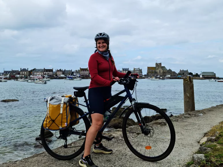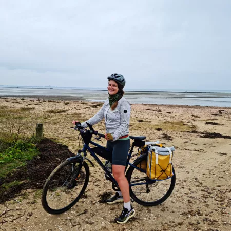 Aurélie, passionnée de cyclotourisme, est une adepte des voyages à vélo. Membre de l'association Cyclo-biblio depuis 2018, elle participe chaque année à des voyages d'une semaine pour visiter des bibliothèques et promouvoir leur rôle, en empruntant principalement des itinéraires cyclables. Elle a déjà exploré des itinéraires comme la ViaRhôna et la Voie Bleue, pour n'en citer que quelques-uns ! Aurélie est très familière avec La Vélomaritime, car elle vit directement le long de cet itinéraire, dans la commune de Pléneuf-Val-André, sur l’étape reliant Saint-Brieuc à Erquy ! Après avoir déjà exploré plusieurs segments en Bretagne, elle a cette fois franchi le Couesnon pour découvrir la Normandie et parcourir l'itinéraire de Cherbourg à Deauville avec une amie.