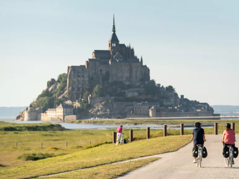 Quoi de plus agréable que de pédaler sereinement le long d'une voie verte, avec en toile de fond le majestueux Mont-Saint-Michel et sa baie ? Et pour parfaire cette expérience, pourquoi ne pas consacrer une journée supplémentaire à la visite du Mont-Saint-Michel ?