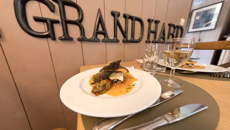Our "Chez Arsène" restaurant at Domaine Utah Beach (formerly Le Grand Hard) is open 7 days a week, morning, noon and night. The Domaine Utah Beach, located 4 km from the famous beach and 10 km from Sainte-Mère-Eglise, includes the hotel Le Grand Hard, the Lavalle cottages, the Utah Beef farm and the "Chez Arsène" restaurant. Every day, our restaurant serves bistronomic cuisine prepared with produce from our organic farm and numerous local producers. The menu changes with the seasons, offering you fresh, tasty products. In the afternoon, the restaurant offers finger food. Come and enjoy the calm of our perfectly exposed terrace, the inner courtyard of our renovated 17th-century farmhouse or our lounge with billiards and board games.