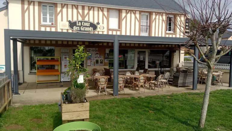 Located on the Véloscénie itinerary in Bion, la cour des grands welcomes you for a stopover: snack options (sandwich shop, salad bar, bar and grocery store). Fresh local produce. Special reception for cyclists, with secure bike boxes, repair kits for sale, covered terrace.