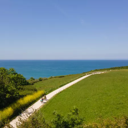 Van Caen naar Ouistreham neemt u de route La Vélo Francette langs het Orne-kanaal en het oude jaagpad dat is omgebouwd tot een groene weg