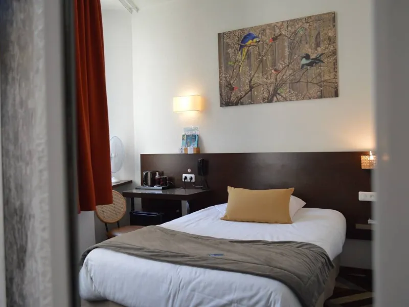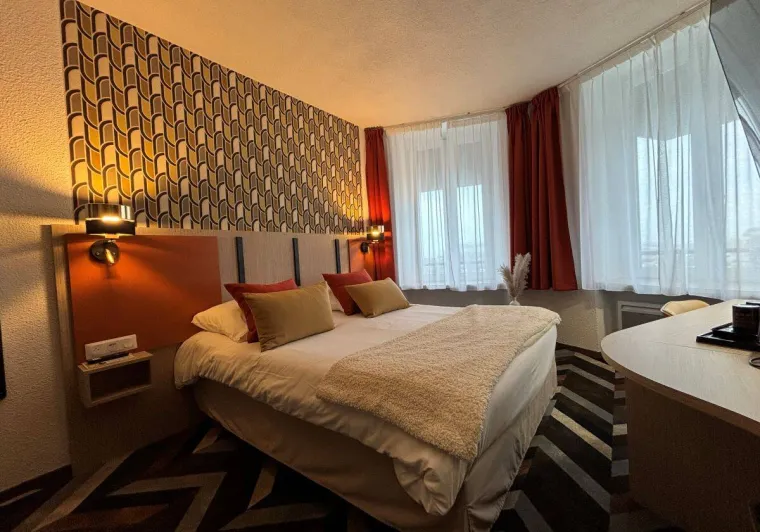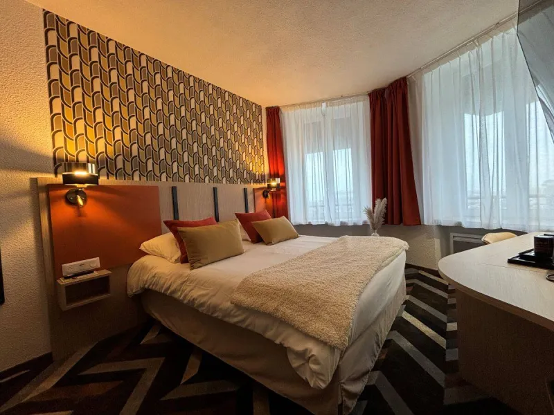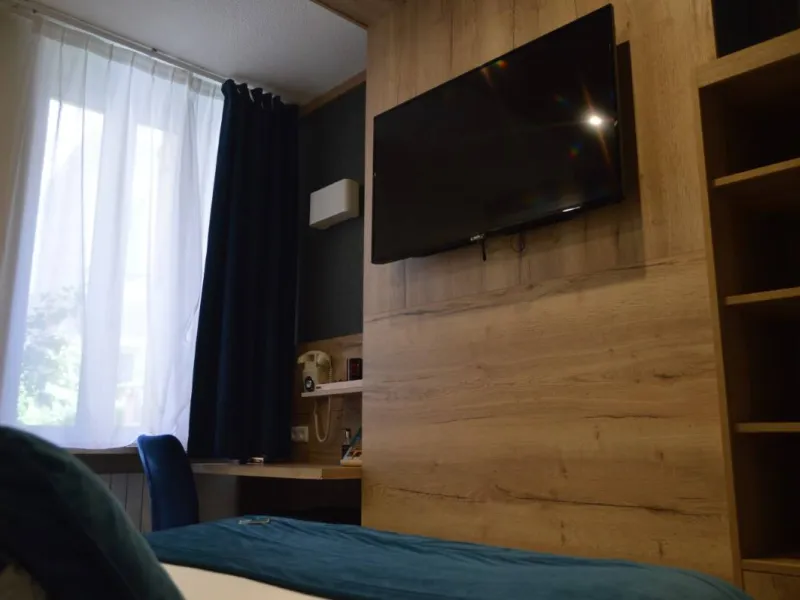 The AMBASSADEUR hotel is located in the heart of Cherbourg. On one side, the dock Caligny with its swing bridge, the harbour, the museum "Cité de la Mer" and the hotel's rear, the center of Cherbourg with the parking Notre Dame, the pedestrian streets, its monuments and its gourmet restaurants.The AMBASSADEUR hotel is an etablishment of 40 rooms all equipped with full bathroom with a shower-bath, toilet, mirror and hair dryer. We offer you a bottle of shampoo, soap, slippers, a bath mat and a towel. Your room is equipped with PVC double glazed windows, a flat-screen TV with TNT, Canal +, Canal SAT and 11 satellite channels, a closet, a work desk with wireless connection free and unlimited quality, telephone with possibility of direct line to order. A very high quality bedding equipped with duvet cover and pillow "welfare" is here to offer you a wonderful night. Our breakfast is served as a buffet where you will find a wide selection of fresh and varied products while enjoying the magnificent view of the marina.