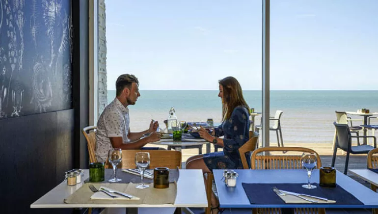 Enjoy the sea-view terrace for an aperitif: cocktail and charcuterie/fish platter, or a snack.